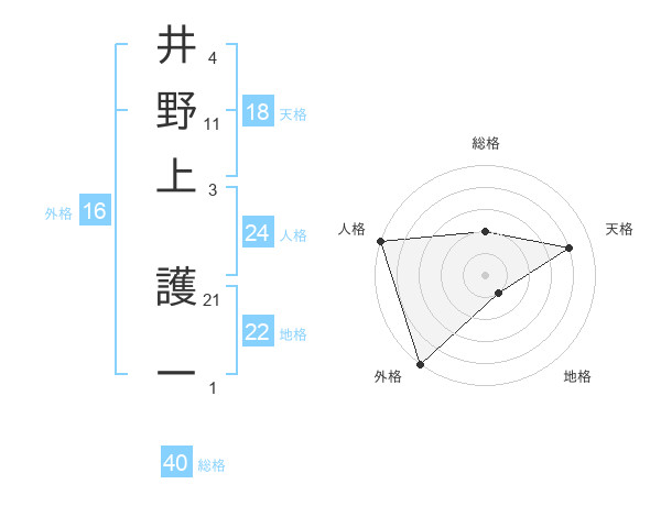 井野上 護一さんの地格は22画の1点!