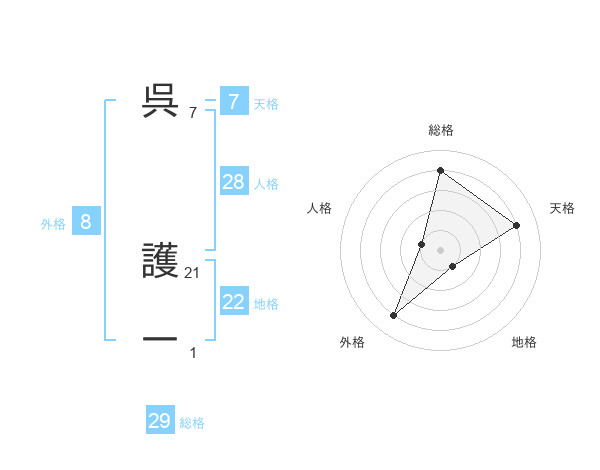呉 護一さんの総格は29画の4点!