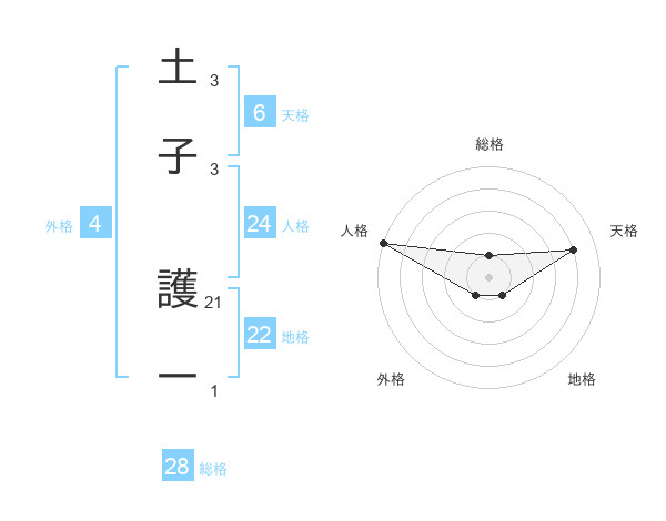 土子 護一さんの総格は28画の1点!