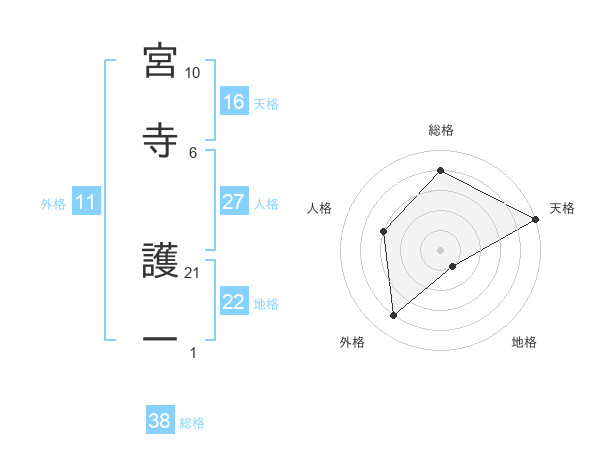 宮寺 護一さんの総格は38画の4点!