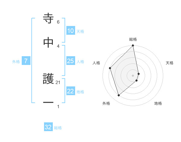 寺中 護一さんの総格は32画の5点!