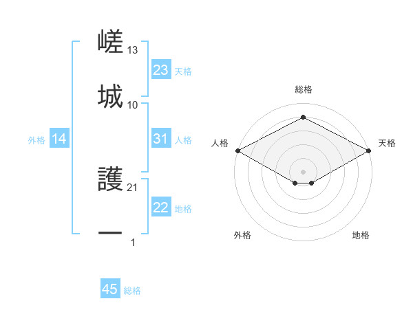 嵯城 護一さんの天格は23画の5点!