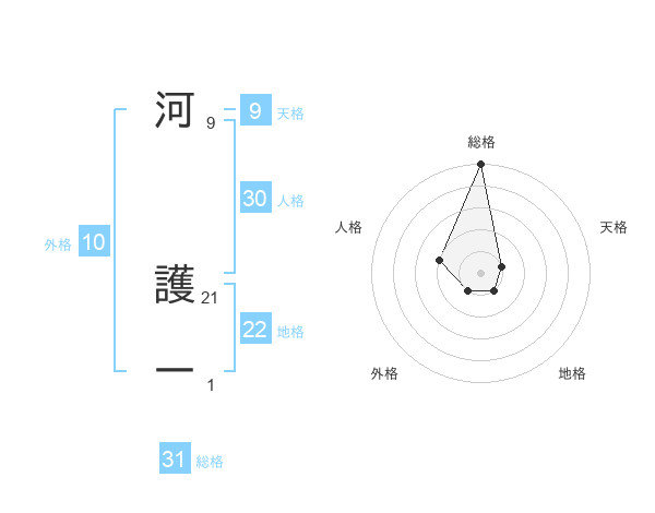 河 護一さんの総格は31画の5点!