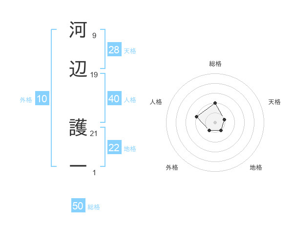 河辺 護一さんの総格は50画の2点!