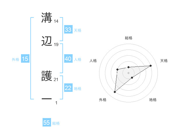溝辺 護一さんの総格は55画の1点!