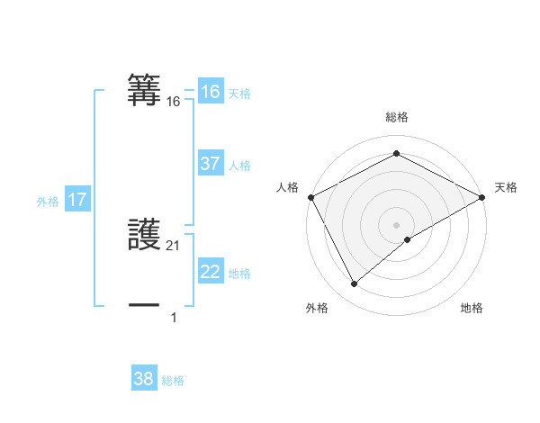 篝 護一さんの総格は38画の4点!