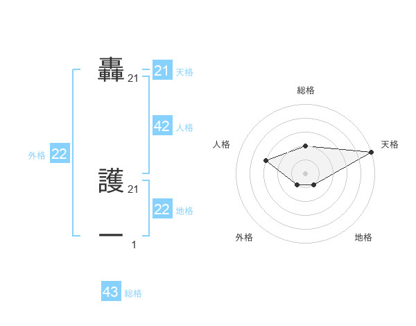 轟 護一さんの天格は21画の5点!
