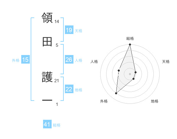 領田 護一さんの総格は41画の5点!