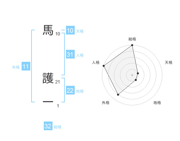 馬 護一さんの地格は22画の1点!
