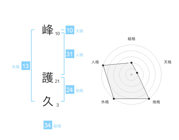 峰 護久さんの地格は24画の5点!