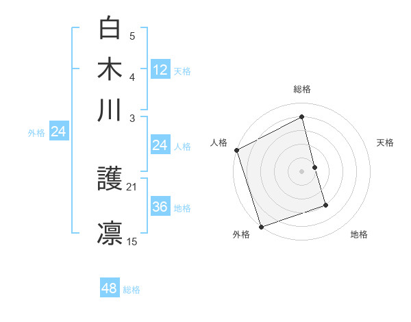 白木川 護凛さんの総格は48画の4点