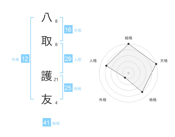 八取 護友さんの総格は41画の5点!
