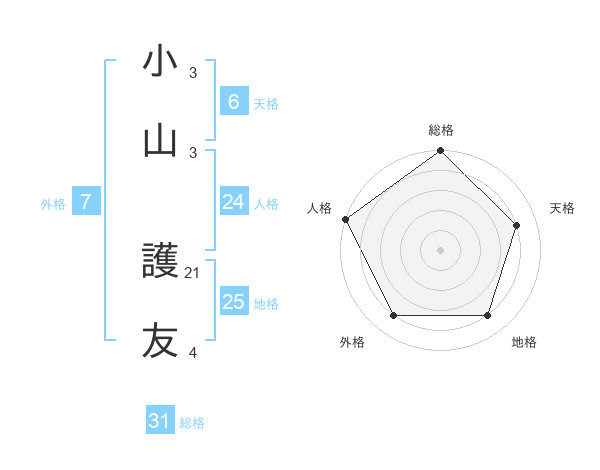 小山 護友さんの総格は31画の5点!