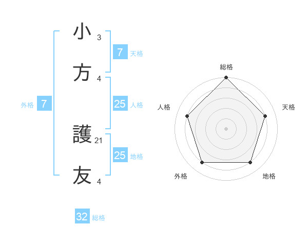 小方 護友さんの総格は32画の5点