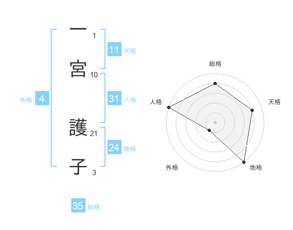 一宮 護子さんの人格は31画の5点!