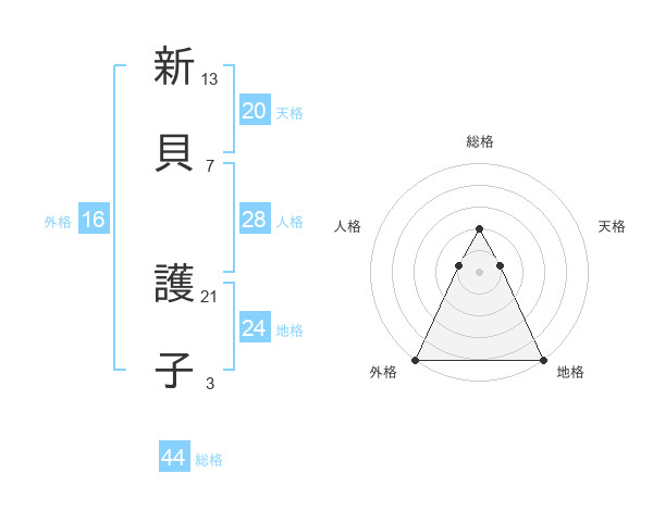 新貝 護子さんの総格は44画の2点!