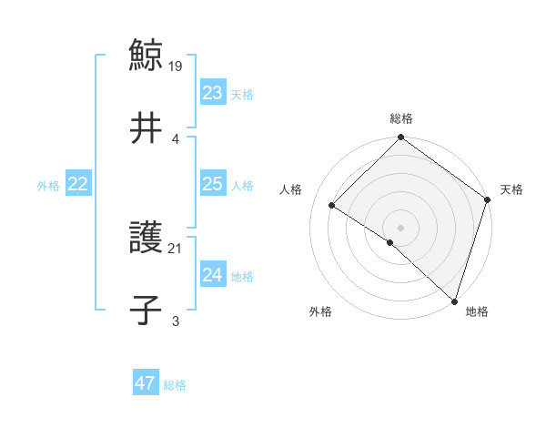 鯨井 護子さんを姓名の画数から五運を鑑定