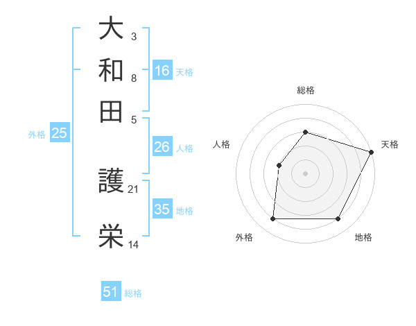 大和田 護栄さんを姓名の画数から五運を鑑定