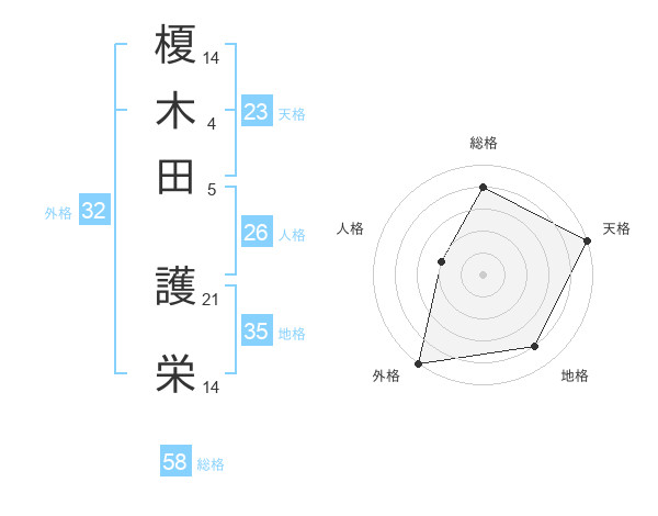 榎木田 護栄さんの総格は58画の4点!