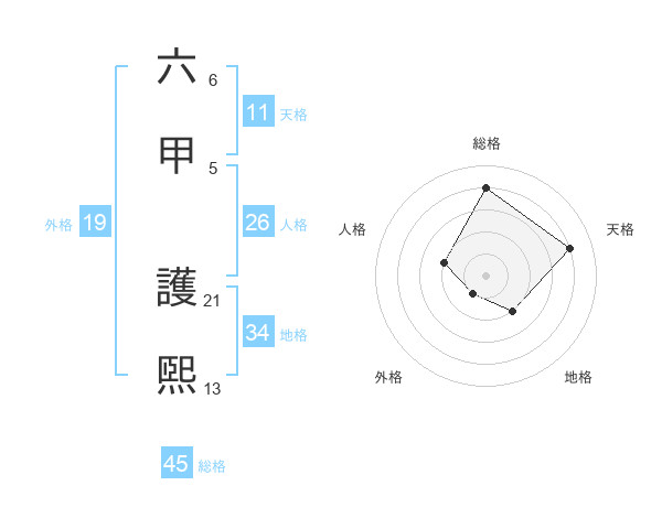 六甲 護煕さんを姓名の画数から五運を鑑定