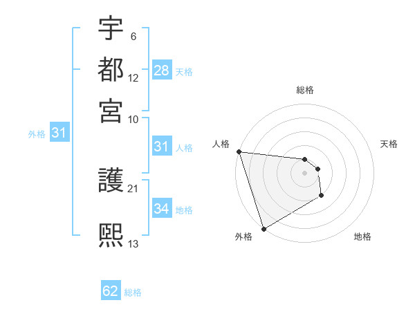 宇都宮 護煕さんを姓名の画数から五運を鑑定