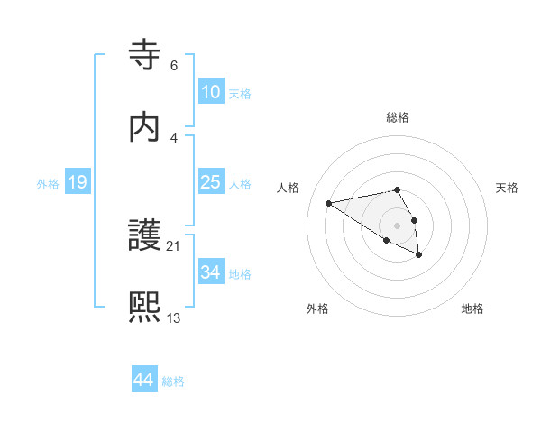 寺内 護煕さんの総格は44画の2点!