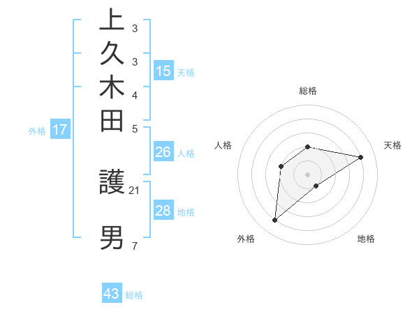 上久木田 護男さんを姓名の画数から五運を鑑定