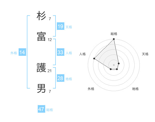 杉富 護男さんの総格は47画の5点!