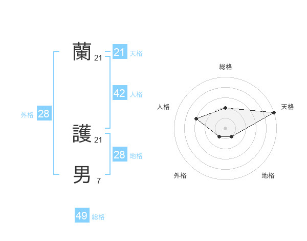 蘭 護男さんの天格は21画の5点!
