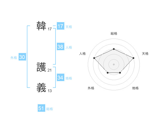 韓 護義さんの天格は17画の4点!