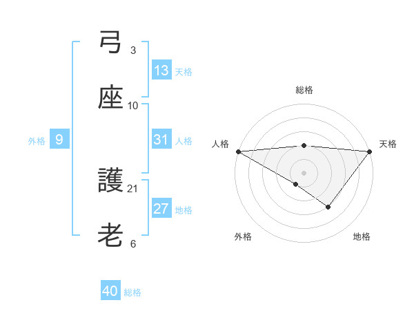 弓座 護老さんの天格は13画の5点!
