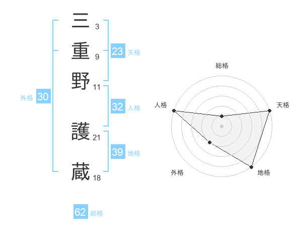 三重野 護蔵さんを姓名の画数から五運を鑑定