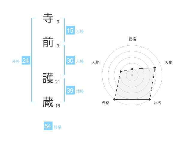 寺前 護蔵さんの総格は54画の1点!