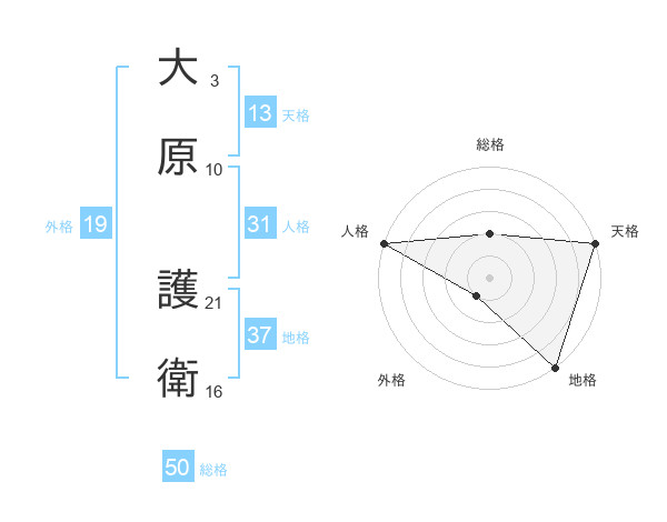 大原 護衛さんの総格は50画の2点!