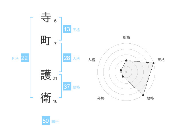 寺町 護衛さんの天格は13画の5点!