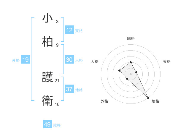 小柏 護衛さんの総格は49画の2点!
