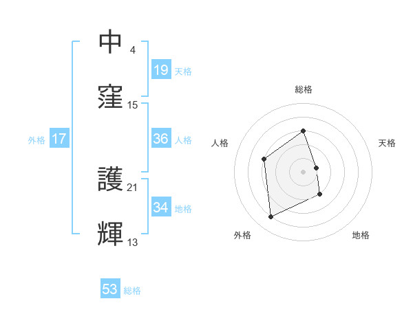 中窪 護輝さんの総格は53画の3点!