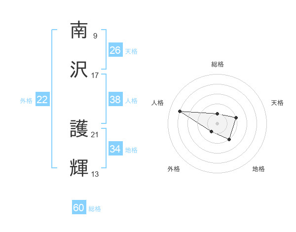 南沢 護輝さんを姓名の画数から五運を鑑定