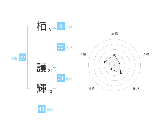 栢 護輝さんの総格は43画の2点!