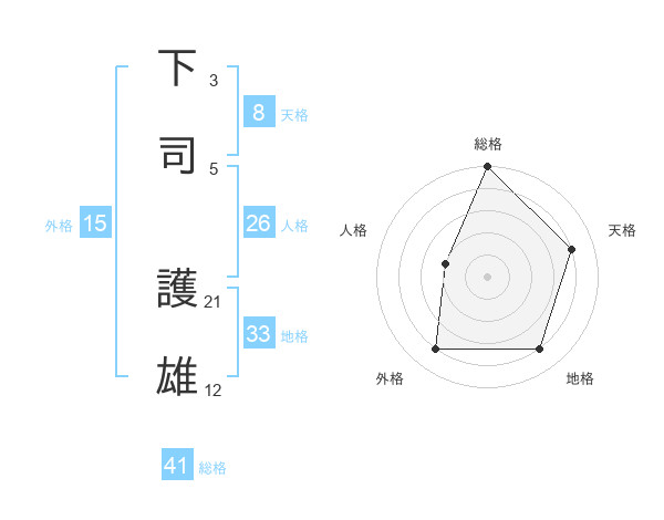 下司 護雄さんの総格は41画の5点!
