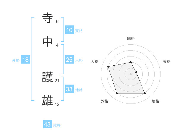 寺中 護雄さんを姓名の画数から五運を鑑定