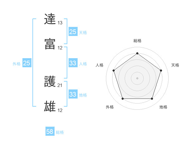 達富 護雄さんの総格は58画の4点!