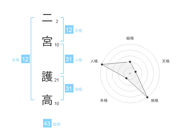 二宮 護高さんの天格は12画の1点!