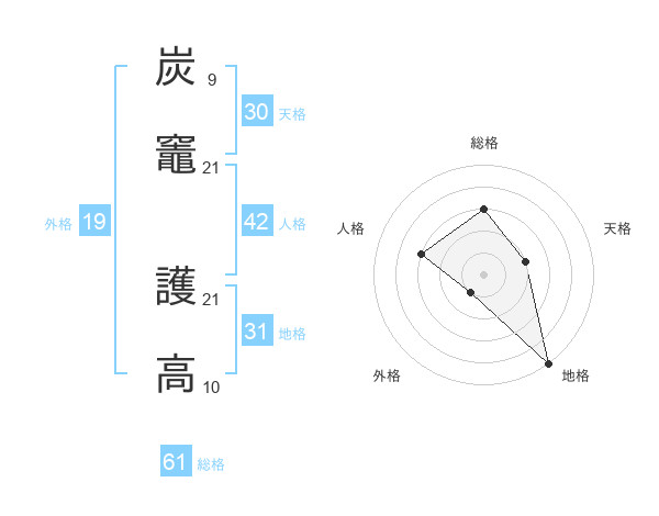 炭竈 護高さんの総格は61画の3点!