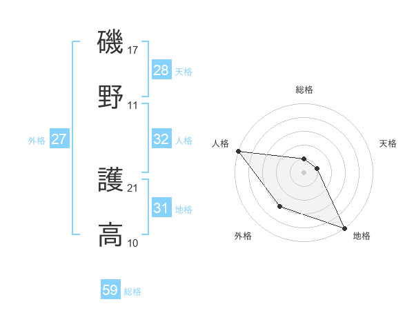 磯野 護高さんの総格は59画の1点!