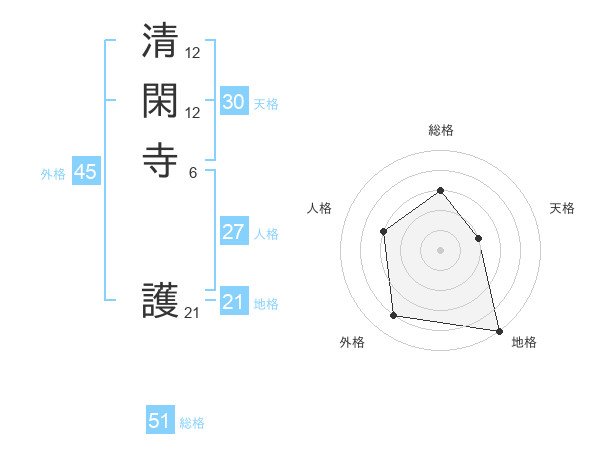 清閑寺 護さんを姓名の画数から五運を鑑定