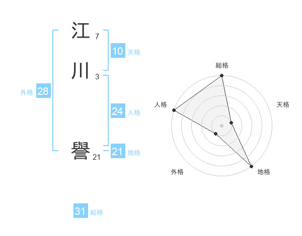 江川 譽さんの総格は31画の5点!