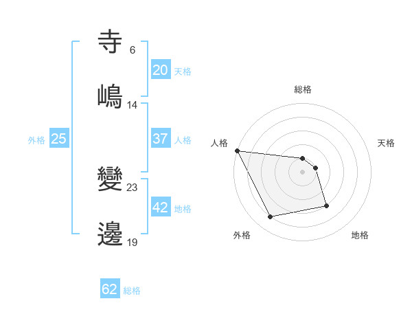 寺嶋 變邊さんの天格は20画の1点!