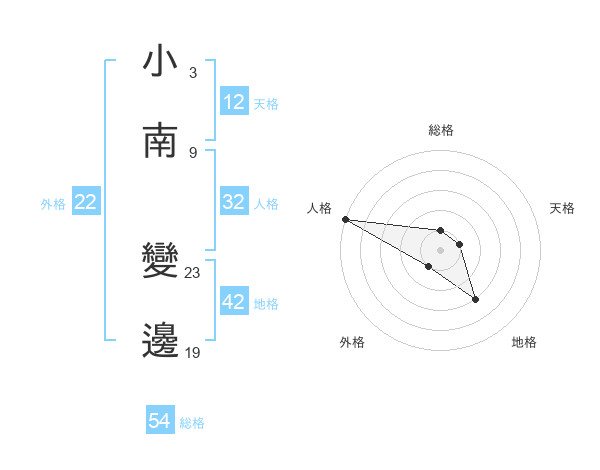 小南 變邊さんの外格は22画の1点!