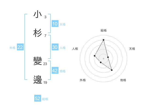 小杉 變邊さんの総格は52画の4点!